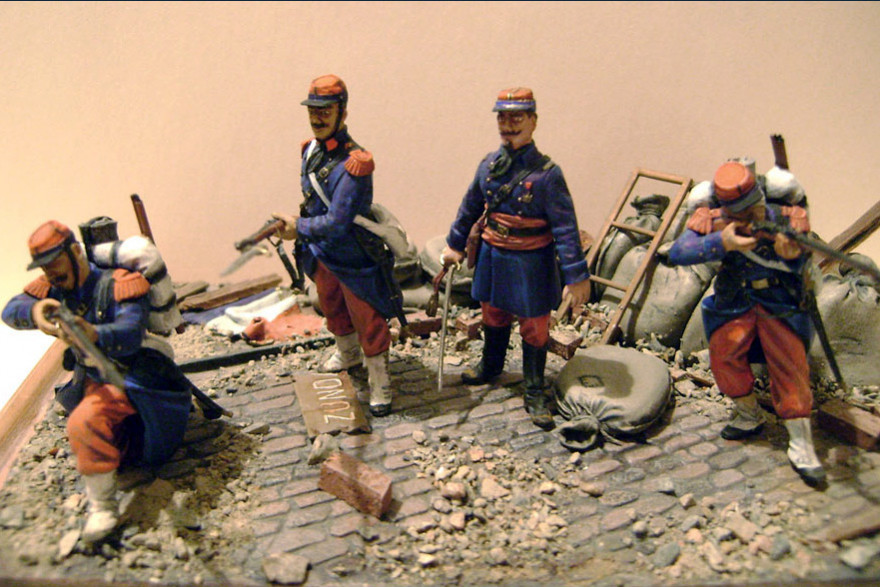 Набор содержит четыре фигуры французских пехотинцев времен франко-прусской войны.