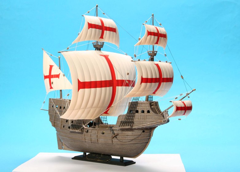 Модель корабля 16 века, на кораблях такого класса конкистадоры отправлялись покорять земли Нового Света. Корабль мог принять на борт до 900 тонн груза при водоизмещении 1600 тонн и мог перевозить 600-700 вооруженных человек. Для своего времени этот корабль был хорошо вооружен, на него устанавливалось 10 корабельных пушек и фальконетов.