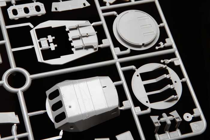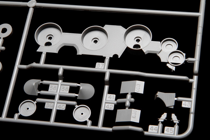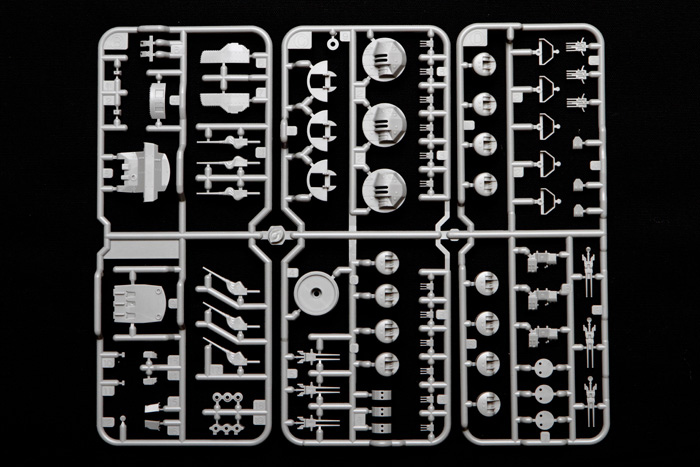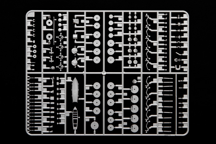 Фототравлёные детали для мачт, межбалубных лестниц, вентиляционных решёток, радара, мачты крана, катапульт и катапультных тележек, различных креплений и проработки множества мелких деталей.